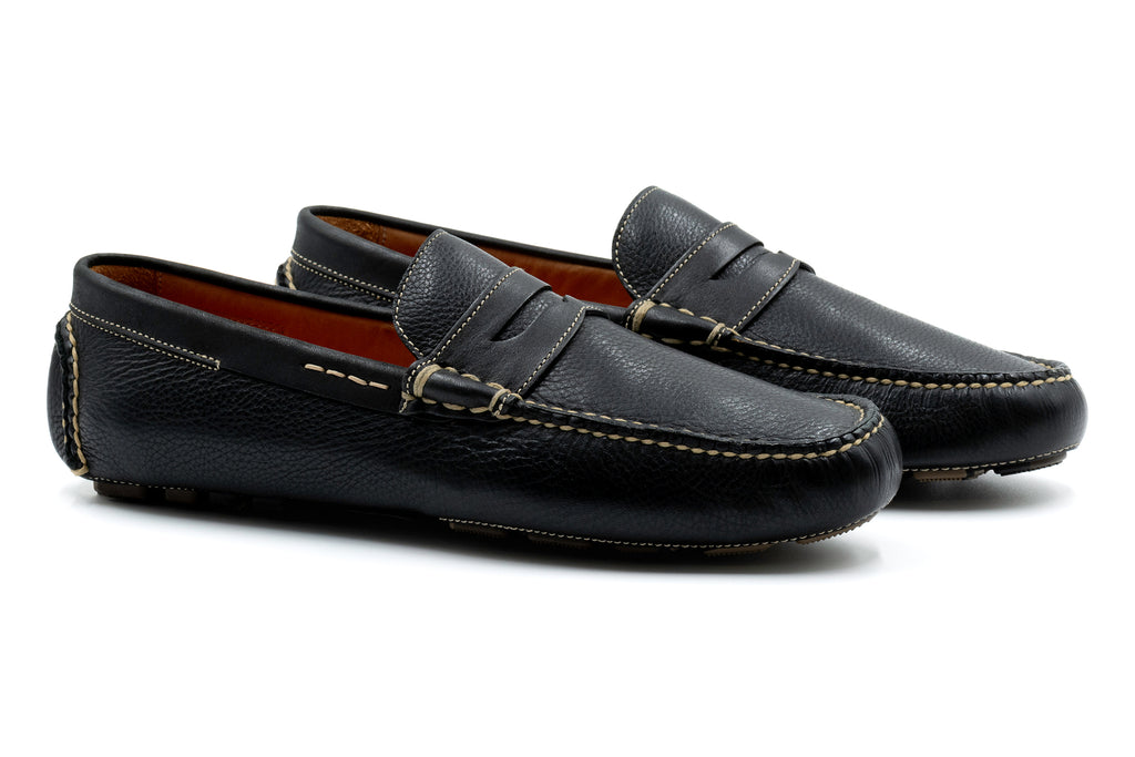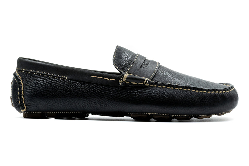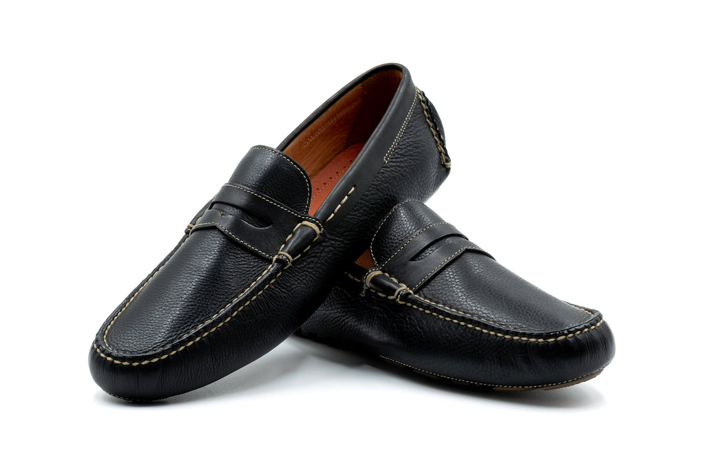 Martin Dingman - Monte Carlo Tumbled Leather Penny Loafer - Black