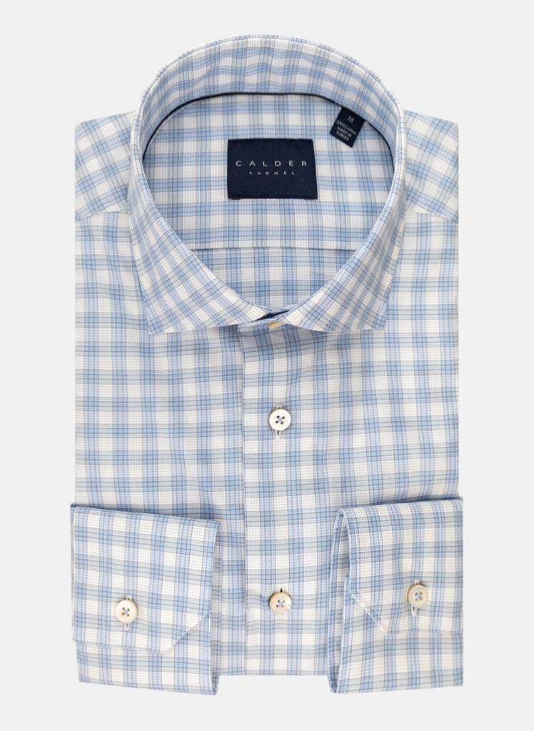 This limited edition shirt is professionally hand-crafted with the world's finest natural fibers and buttons, offering superior quality. The unique check pattern adds a touch of character and style to any outfit. Experience luxury and style with Calder.