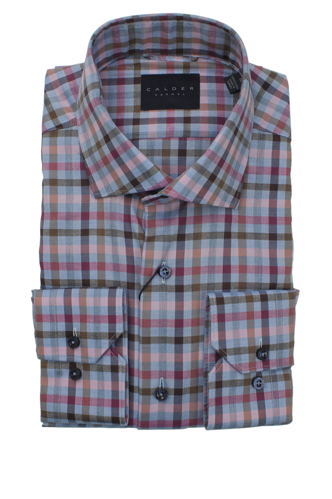 Designed in Carmel, California and crafted in Europe, this Calder Sport Shirt delivers a precise balance of lightweight comfort and pattern clarity. The Blue & Pink Multi Plaid offers a versatile, modern palette, while the tailored silhouette maintains a clean line through the body. Engineered with reinforced construction details and a smooth, breathable cotton weave, this shirt is built for dependable, all-day wear.