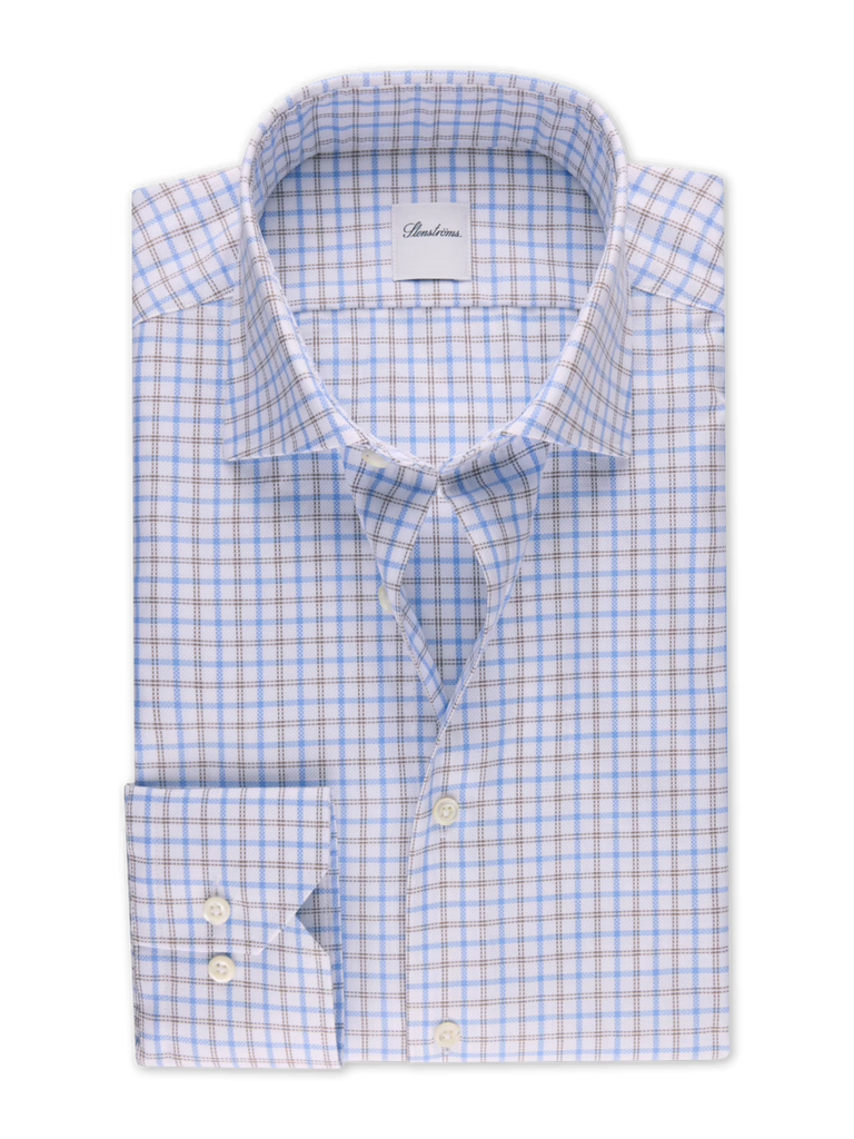 This checked oxford shirt is made of cotton. The shirt is detailed with mother of pearl buttons, single cuffs and a cut away collar.