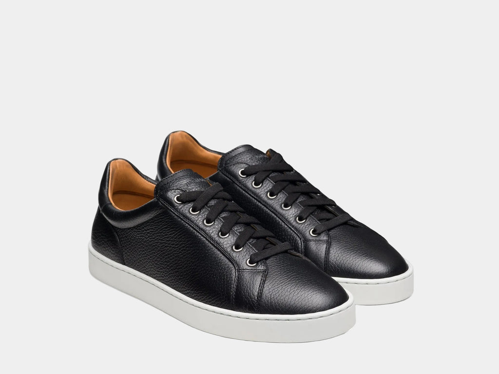 Redefining versatility and ease, the Cote Lo Stretch-Lace is a sleek low-top sneaker that seamlessly blends elevated design with everyday functionality. Crafted from premium Rugo Black calfskin, this refined cupsole style pairs effortlessly with a sport coat and dress trousers while remaining relaxed enough for elevated casual wear. Its innovative stretch-lace system delivers the look of a classic lace-up with the effortless feel of a slip-on—no tying required. With a minimalist silhouette and modern convenience, the Cote Lo Stretch-Lace offers polished comfort and all-day support in one streamlined design.