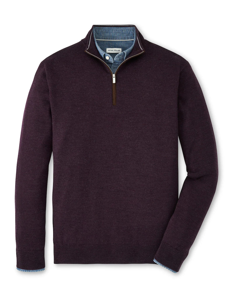 Peter Millar -Autumn Crest Suede Trim Quarter-Zip - Midnight grape