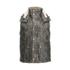 Designed with the waterfowl hunter in mind, the Fowler Vest has an 8.25 ounce waxed cotton shelter cloth outer shell that will develop a rich patina with wear. This insulated hunting vest features a detachable, insulated hood with adjustable drawstrings and scalloped shape for maximum visibility. Oversized front handwarmer pockets are lined with soft, warm moleskin. Front bellow pockets provide ample storage for shells and other essentials. The interior has three pockets, including one with a zipper closure to keep valuables secure. A liner inspired by Alabama red clay adds a touch of color to the interior, and a collar stand lined with soft corduroy provides welcome protection from the cold. Durable antique brass hardware snaps and two-way main zipper.