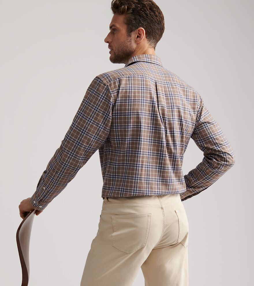 Have the best of both worlds in Peter Millar's new flannels. They’re thoughtfully designed with a lightweight blend of performance fibers and viscose to mirror the brushed, natural hand of traditional cotton styles, with thermoregulating properties. Super soft with comfortable stretch, they’re the perfect addition to your fall shirt lineup.
