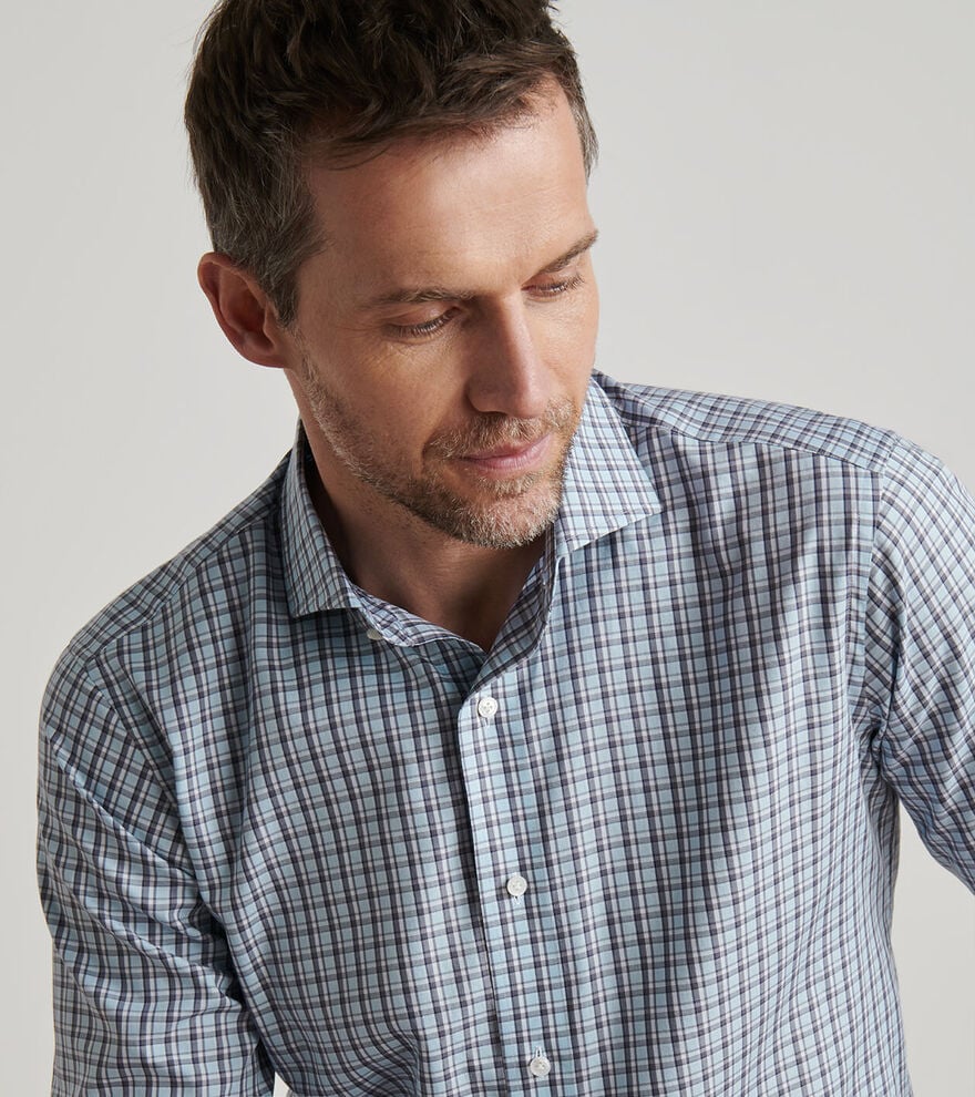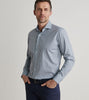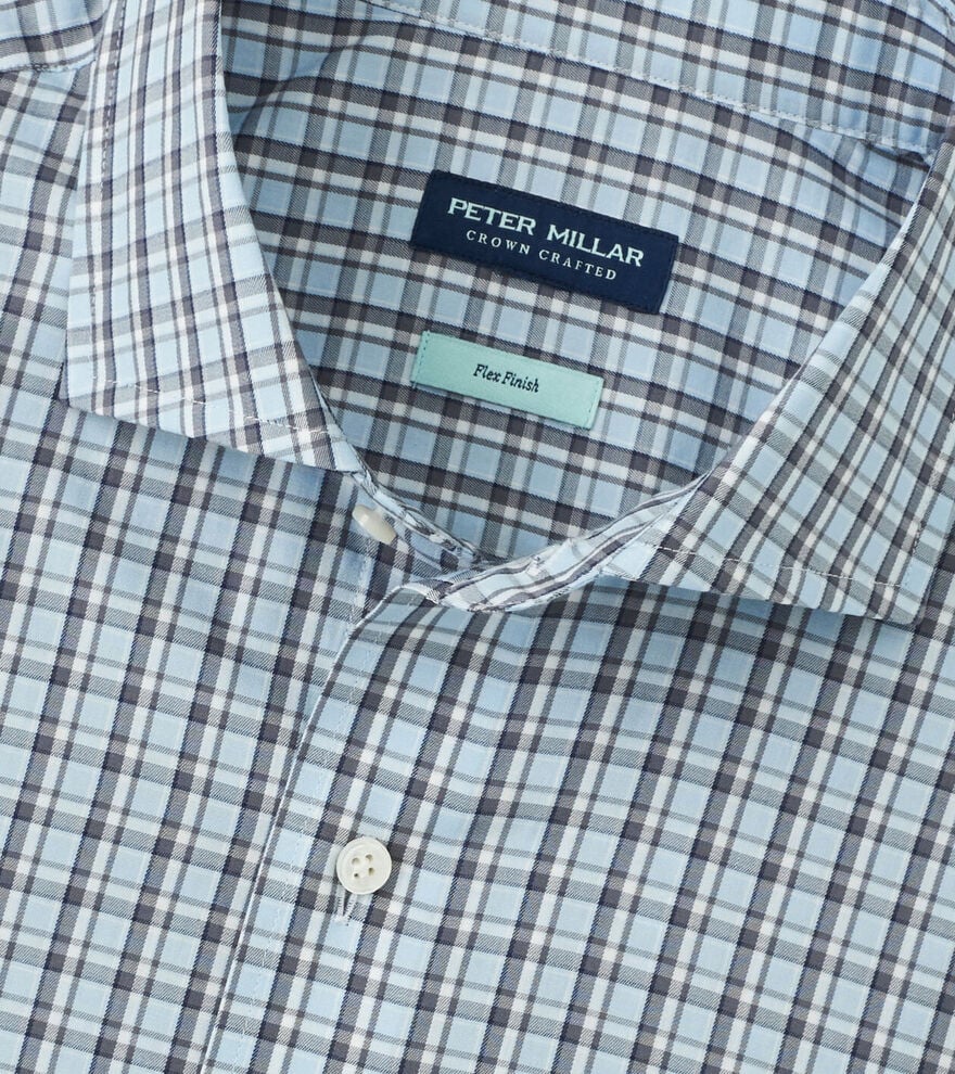 This sport shirt is made from an exceptionally soft cotton and is designed with Peter Millar's signature Flex Finish, a process that allows for stretch comfort in a full natural fiber fabric. Finished with a spread collar, French placket, mother-of-pearl buttons and mitered cuffs.