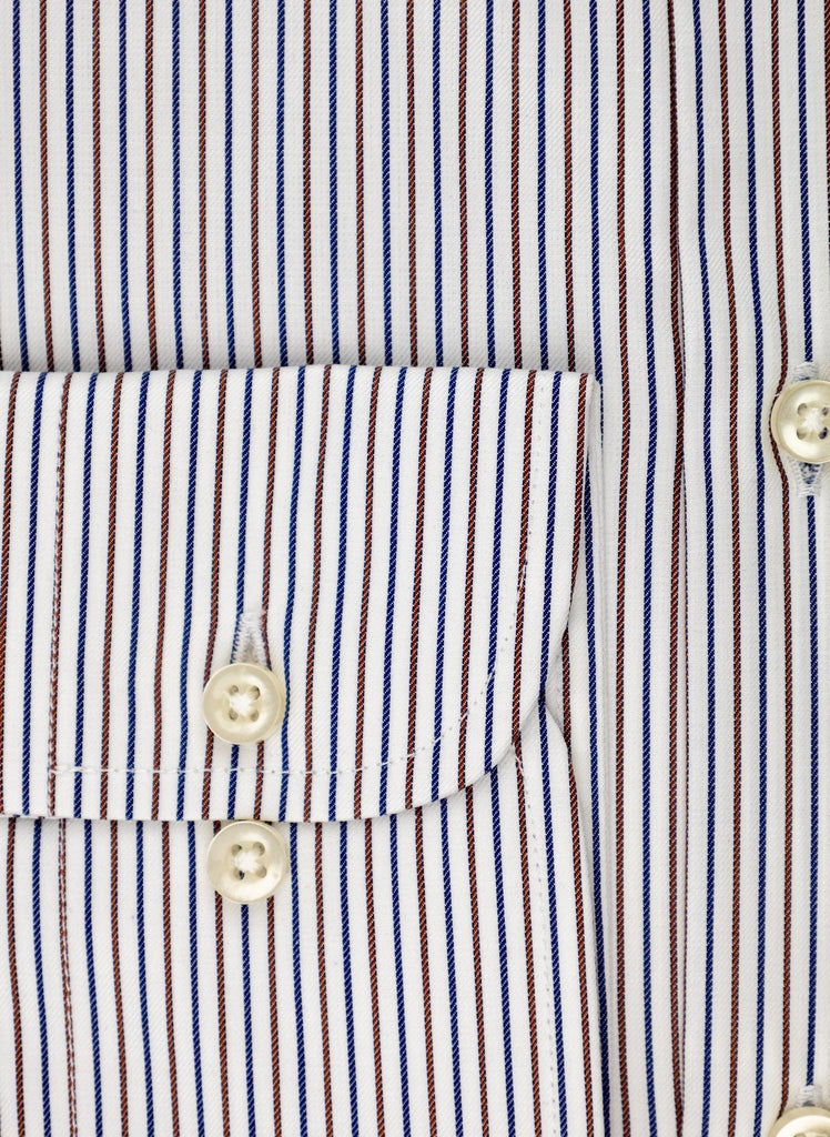 Crafted from 100% cotton, the Seaward & Stearn Mini Stripe Shirt boasts a comfortable and breathable fit. Featuring a subtle orange and blue stripe pattern, this men's sport shirt is perfect for adding a touch of color to your wardrobe. Elevate your style with this high-quality, expertly crafted shirt.