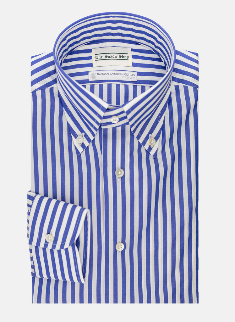 Expertly crafted with 100% cotton, The Saxon Shop's Royal Stripe sport shirt offers comfort and versatility. Dress it up with a sport coat or keep it casual with 5 pocket pants for a stylish look. Perfect for any occasion, this shirt is a must-have for any modern man's wardrobe.