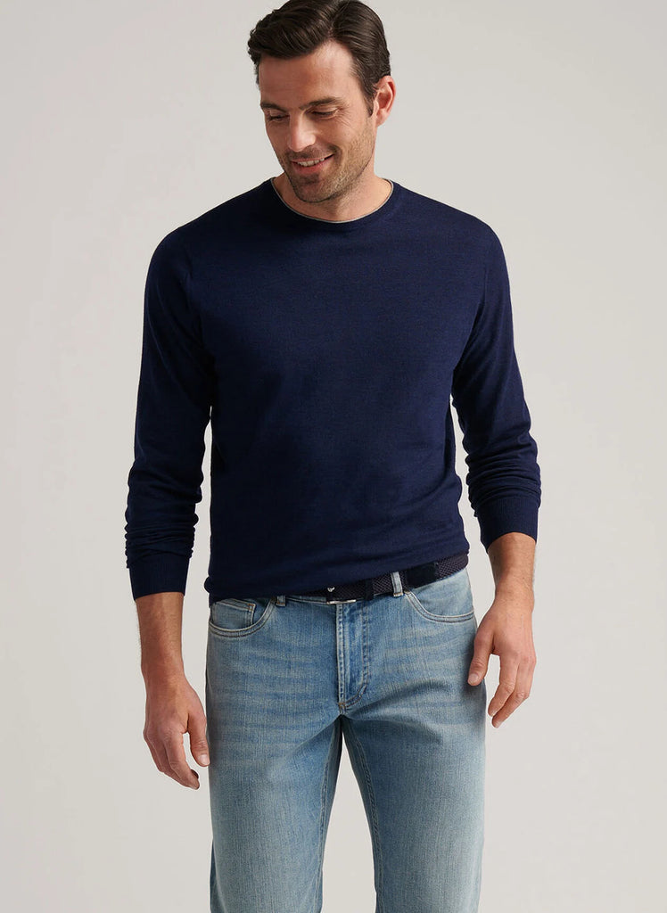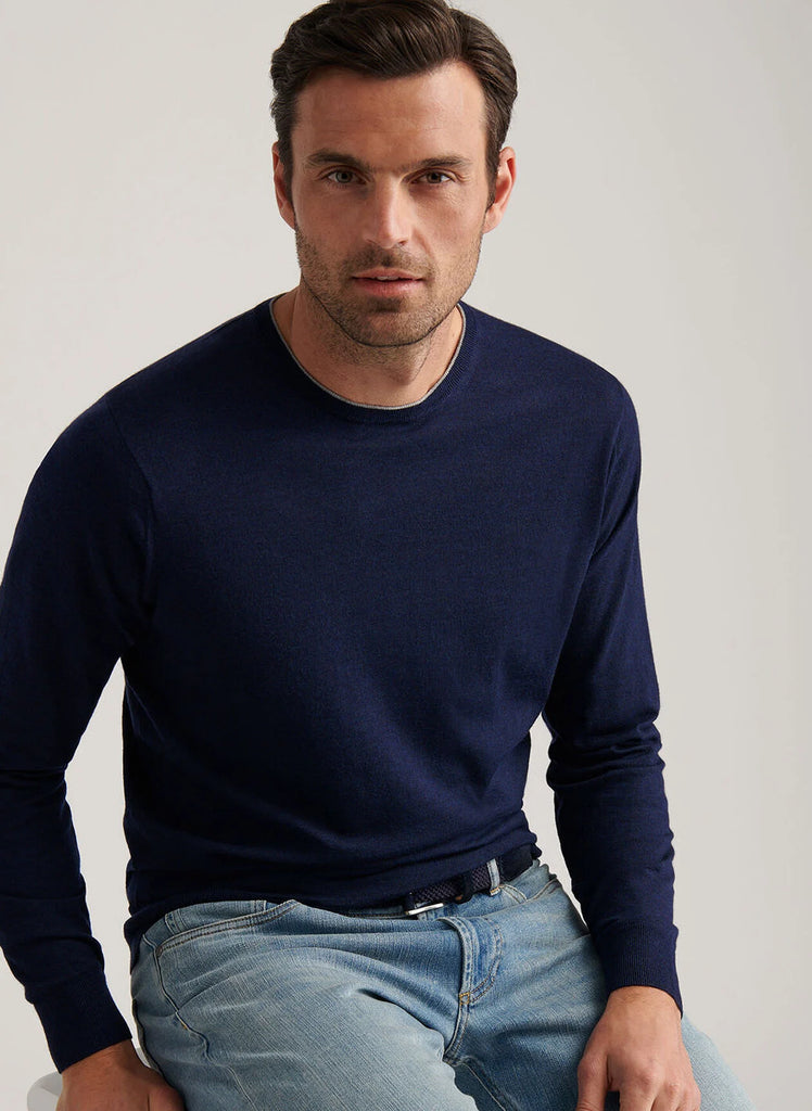 This elevated crewneck sweater features the exceptional softness and natural performance of 16.5 micron Merino wool, only a single micron away from luxury-classed cashmere. The Merino is combined with a core performance yarn for ideal stretch mobility and shape retention. Lightweight, endlessly versatile and perfect for travel.