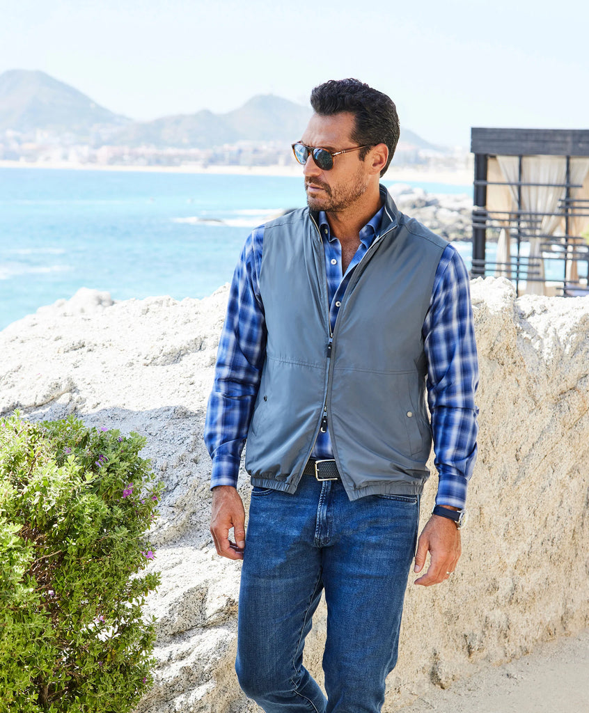 A refined vest designed for effortless layering. Crafted from lightweight, functional materials, it provides warmth without bulk during crisp spring mornings while maintaining a clean, tailored profile. Easily packable and built for life on the go, it pairs seamlessly with a Weekender Polo or worn open over a tee for a more relaxed, everyday look.